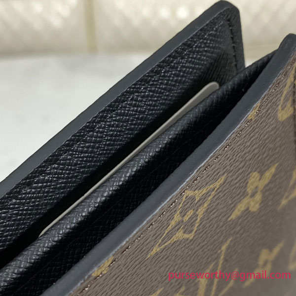 Tall and trim, the Brazza wallet takes on a new contemporary chic with Louis Vuitton’s elegant Monogram Macassar blend of coated canvas and fine cowhide leather. Slim enough to tuck into a jacket pocket, it has a place for everything, with no fewer than 17 card slots, a coin holder and five compartments for cash and papers.