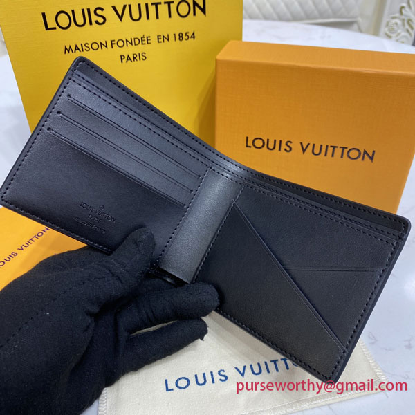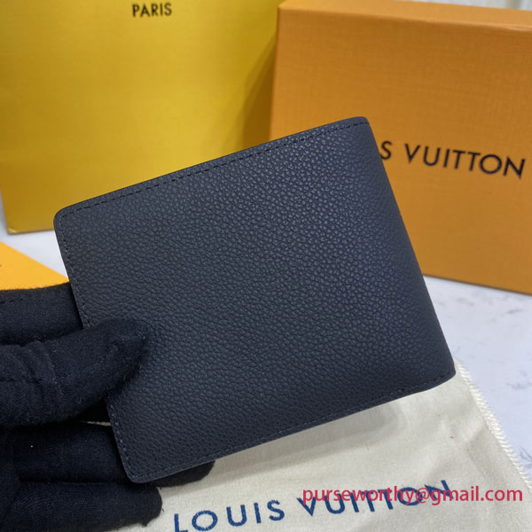 The classic Multiple wallet takes on a new understated elegance with this LV Aerogram version in black calf leather, treated with a special fulling technique to bring out its plush grain. A discreet “LV” in black metal adds a refined signature touch. Handsome and practical, it makes an ideal companion to any of the LV Aerogram bags.