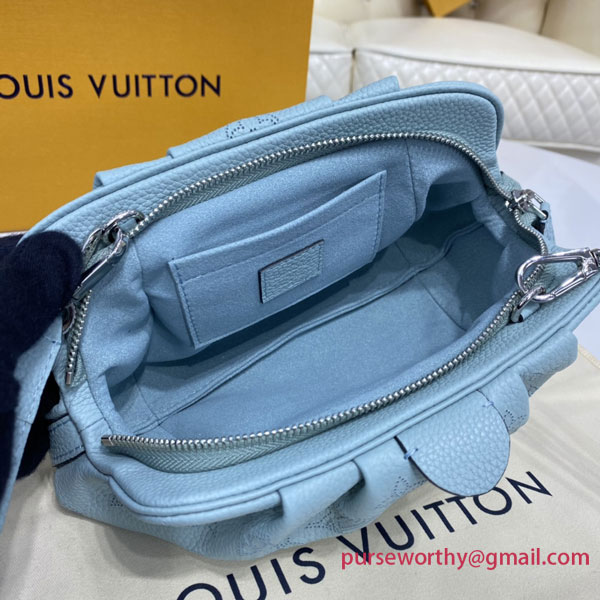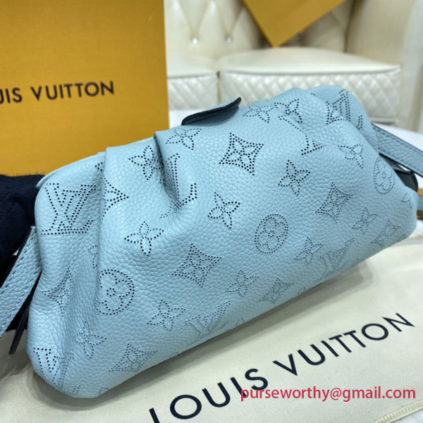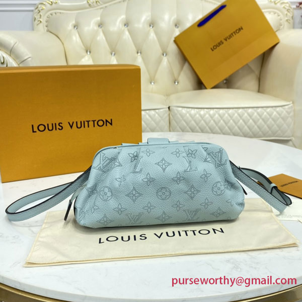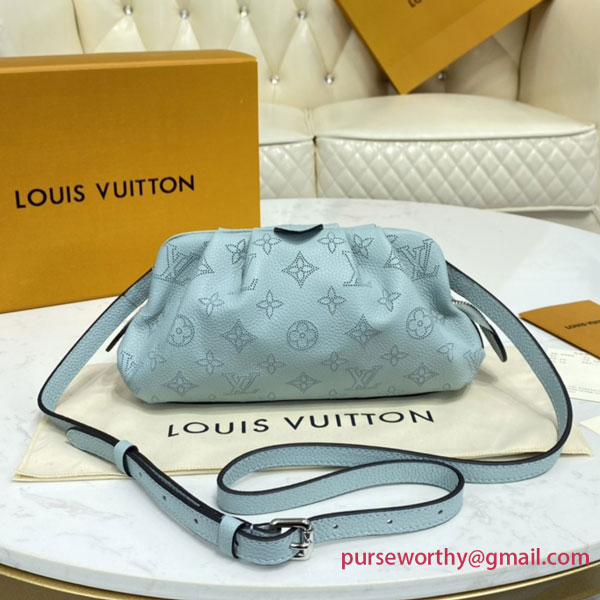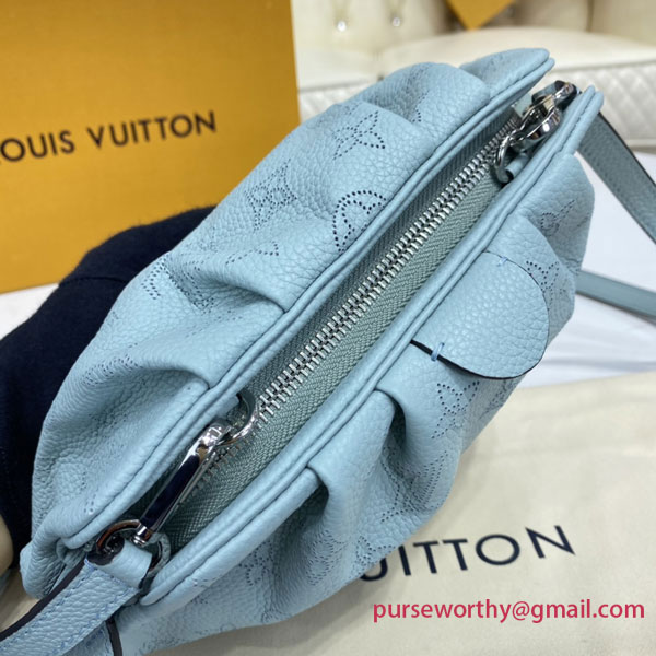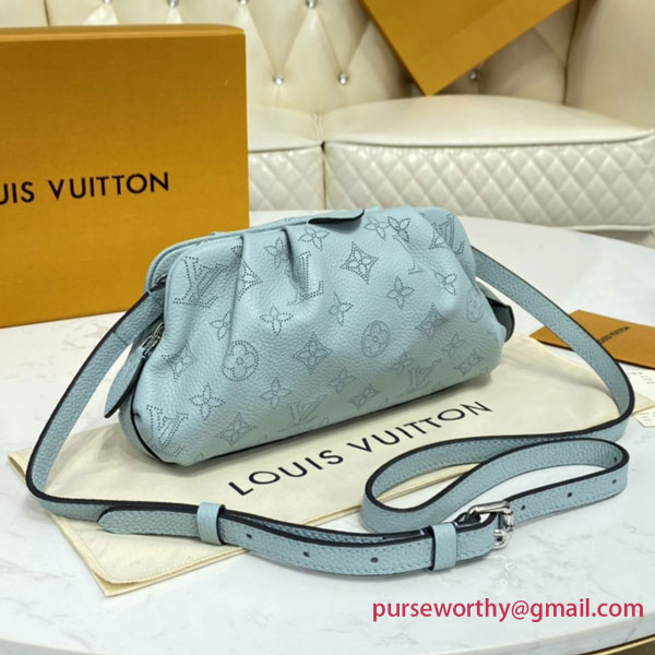 The Scala mini pouch has a soft, body-friendly shape inspired by the folds and pleats of drapery. It is crafted from supple Mahina calf leather, whose delicate perforations replicate Louis Vuitton's iconic Monogram pattern. Large enough to hold everyday essentials, it has a removable, adjustable strap, enabling it to be carried in several different ways.