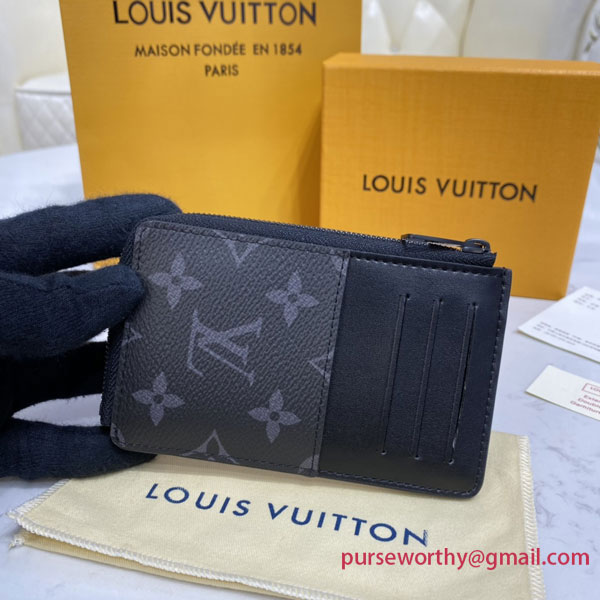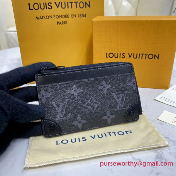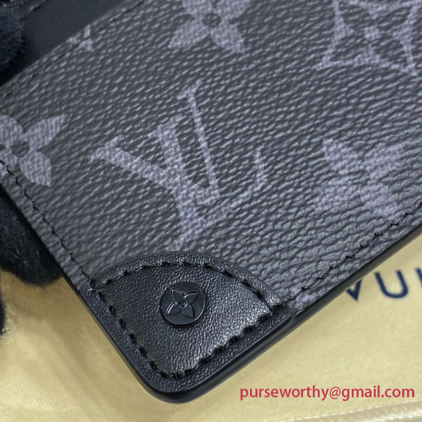 Made from masculine Monogram Eclipse canvas, the Multi Card Holder Trunk has a design clearly influenced by Louis Vuitton’s historic trunks. It features four exterior card slots as well as an outside flat pocket easy access to essential cards and papers. Inside, there’s a flat pocket for banknotes or receipts.