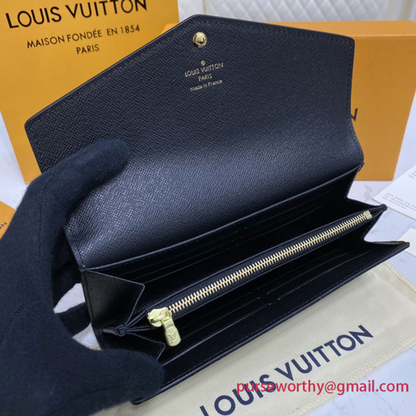The Sarah wallet is revisited in an elegant combination of Monogram and Monogram Reverse Giant canvas. This classic, rectangular wallet is notable for its well-organized interior featuring an array of pockets and card slots. Its envelope-style flap is secured with an engraved, gold-tone press-stud.