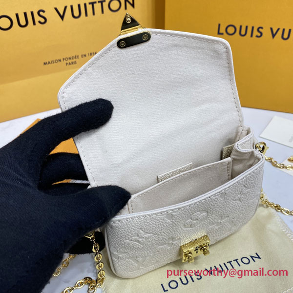 The Micro Métis is a miniature version of the emblematic Pochette Métis bag. Crafted from supple Monogram Empreinte leather, this mini-satchel on its removable, gold-tone chain is a fashionable way to carry essentials. It features the key signatures of the Métis line, including the iconic S-lock clasp inspired by historic Louis Vuitton trunks.