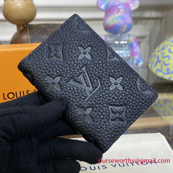 The Pocket Organizer is a small wallet whose compact dimensions belie its interior capacity. Made from Taurillon leather, it’s embossed with Louis Vuitton’s classic Monogram pattern. Inside, numerous pockets and credit-card slots make it an eminently practical wallet.