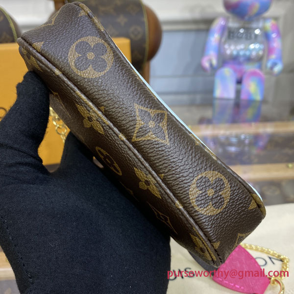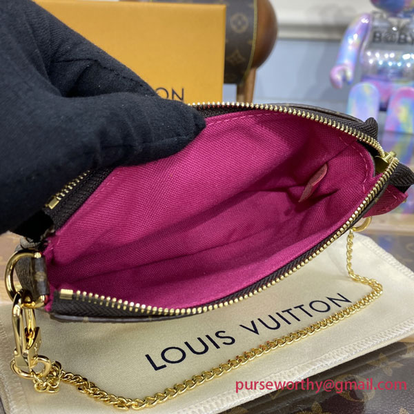 For the Holiday 2022 collection, the Mini Pochette Accessoires in Monogram canvas features an exclusive print paying tribute to South Korea. An invitation to travel, it shows Louis Vuitton mascot Vivienne with the futuristic Seoul boutique, a Sakura tree and a temple. This collectible mini pouch, finished with a fuchsia-pink lining, makes a perfect gift.