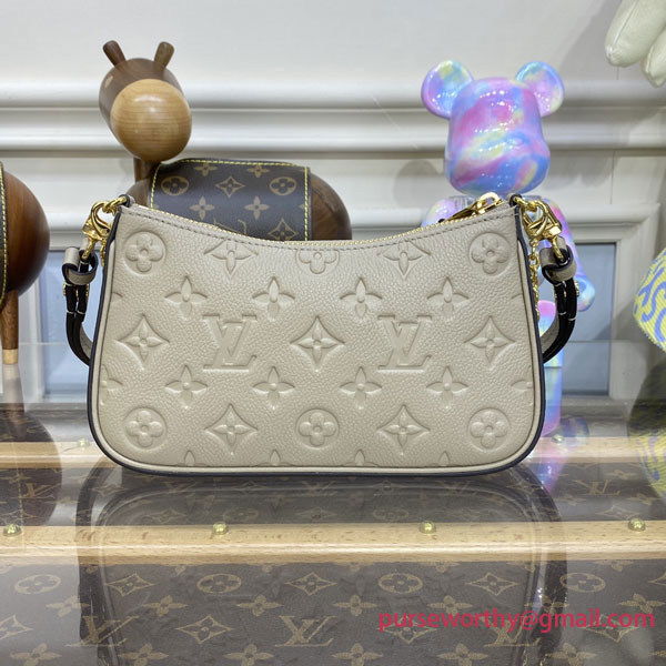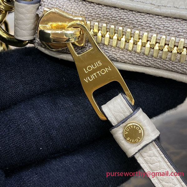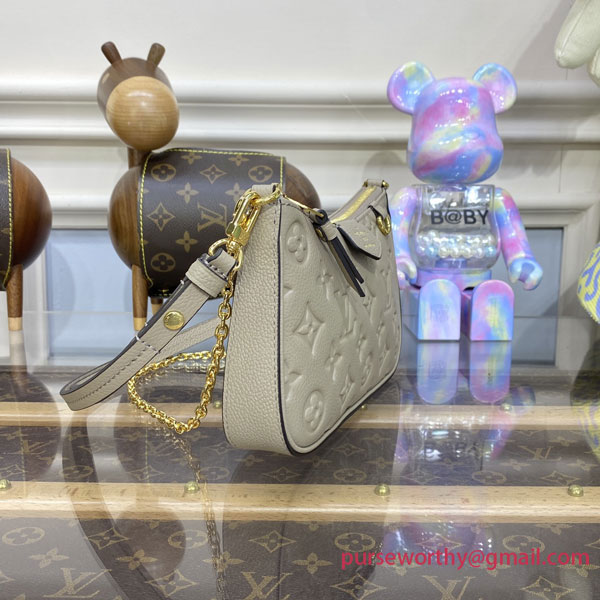 The Easy Pouch On Strap is made from Monogram Empreinte leather. The sleek design lends itself beautifully to the embossed Monogram pattern on the supple Empreinte leather. It can be worn on the shoulder, with the chain or the strap for a short carry, or cross-body as the leather strap is adjustable.