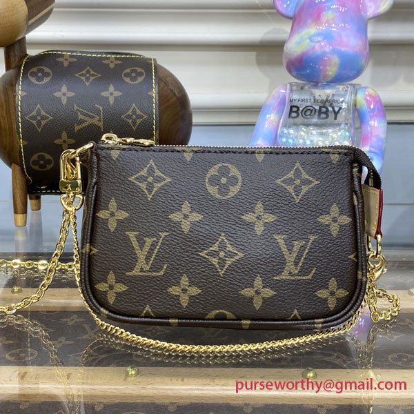 The Mini Pochette Accessoires on Chain in Monogram canvas comes with a long, removable chain, which makes this iconic accessory even more versatile by allowing it to be carried on the shoulder or across the body. This mini bag retains its original short chain and secure zip closure, making it perfect for carrying small essentials.