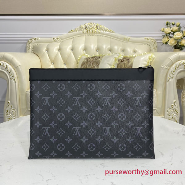 This Discovery clutch in supple Monogram Eclipse canvas is the perfect size for transporting documents and other personal belongings. Elegant and contemporary, it can be hand-carried or used as a bag in a bag.